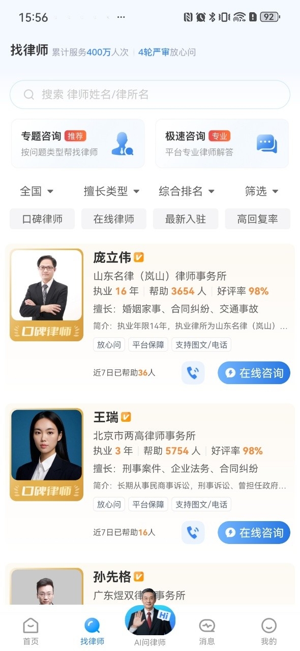 4、也可以选择找律师,大家可以在这里找律师。
