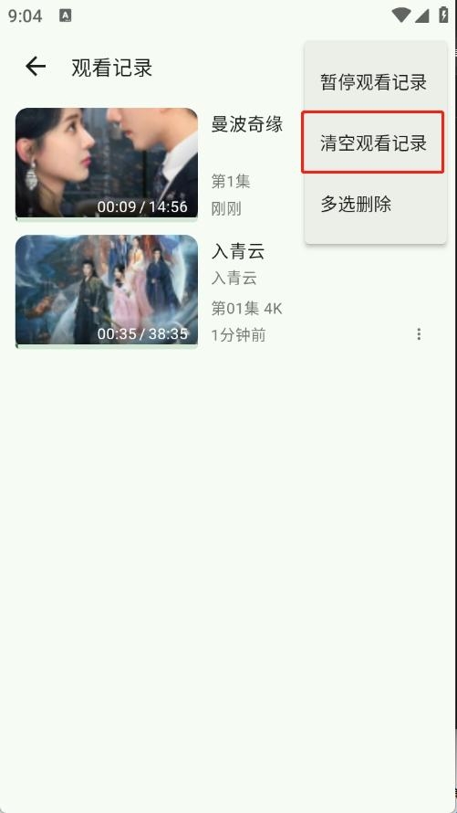 3、选择清空观看记录即可。