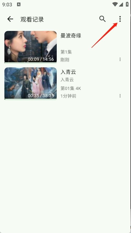 1、点击右上角的历史。