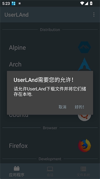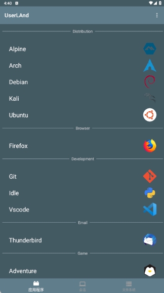 UserLAnd是一款专门为安卓手机用户所打造的Linux系统模拟器,在软件里用户无需root您的设备就能够使用内置终端访问您喜欢的外壳,并轻松连接到vnc会话以获得图形体验,还能够让用户设置多个常见的linux应用程序,例如octave和firefox,适配各种类型的安卓手机,非常欢迎有需求的用户前来下载体验。