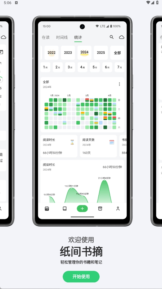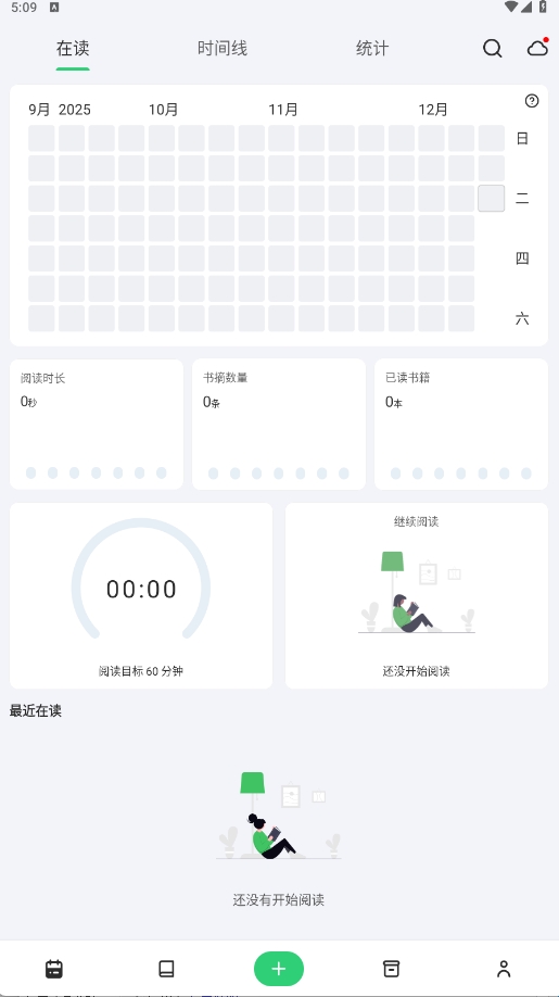 1、在本站下载好并打开书伴阅读,在日历界面,可看到在读、时间线和统计等分栏。