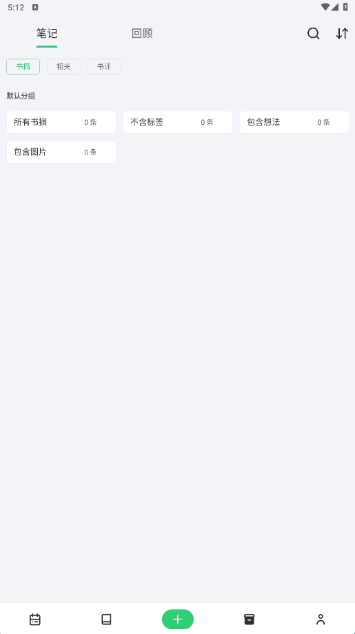 5、在存档界面,我们可以查看和搜索自己的历史书摘、标签、想法和图片等内容。