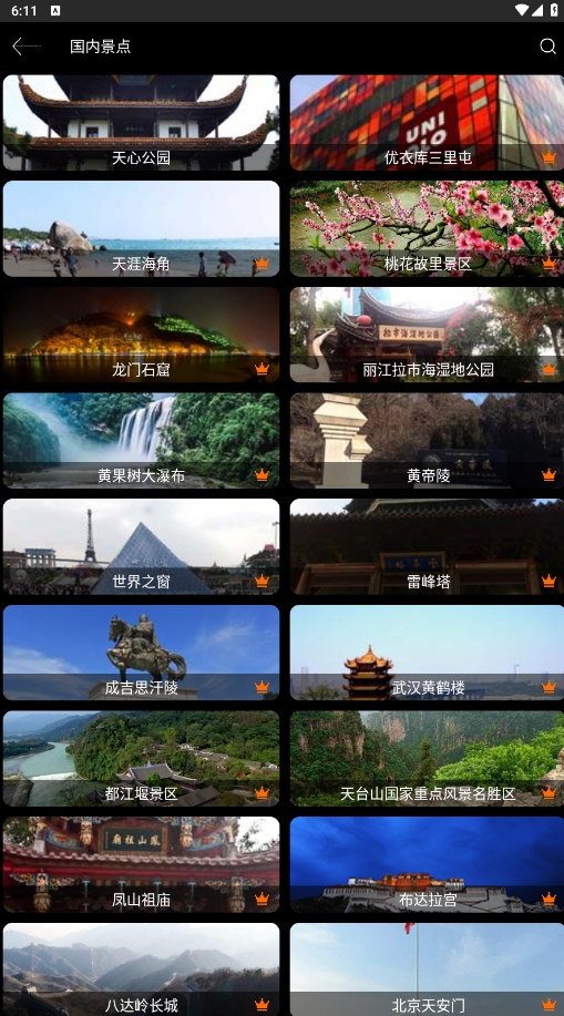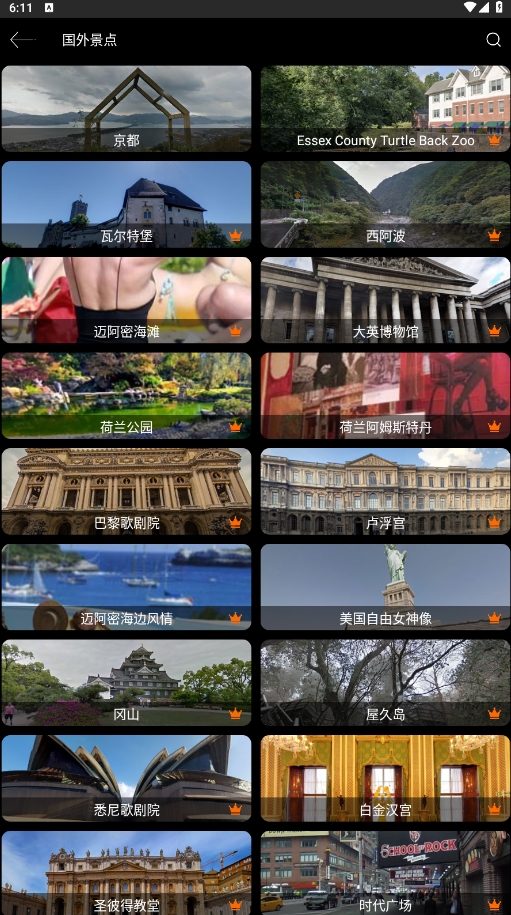 2、直接点击国内街景或者全球景点,可以看到许多景点名称和对应图片,选择自己想要了解的景点,点击进入。