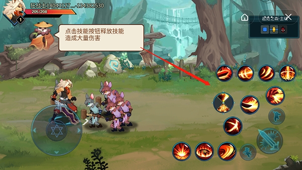 3、点击各种技能按钮可以释放技能,造成大量的伤害。