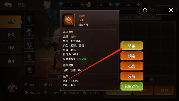 4、击败boss后有概率掉落强大装备,装备后可增强角色各项属性。