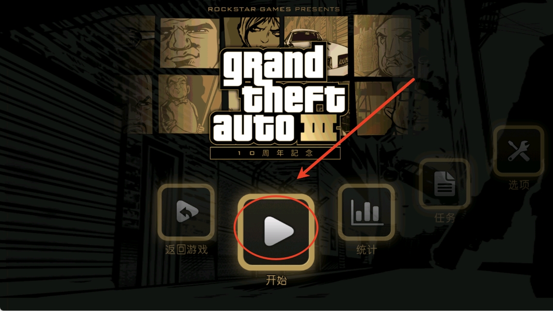 1、在本站下载好GrandTheftAutoIII后,点击屏幕开始游戏。
