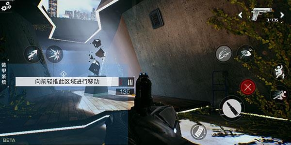 4、向前轻推左下角的区域,即可控制角色进行移动。