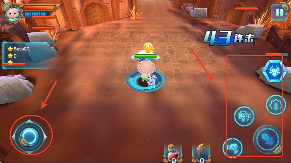 4、左下角是移动键,右下角是攻击键和技能键。