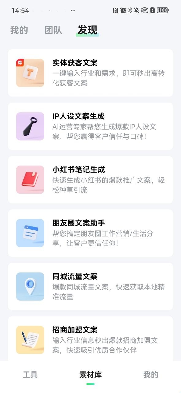 4、点击下方素材库,再点击发现有着多种文案和帮助用户轻松的完成剪辑。