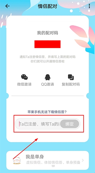 3、填写下对方的ID码进行绑定。
