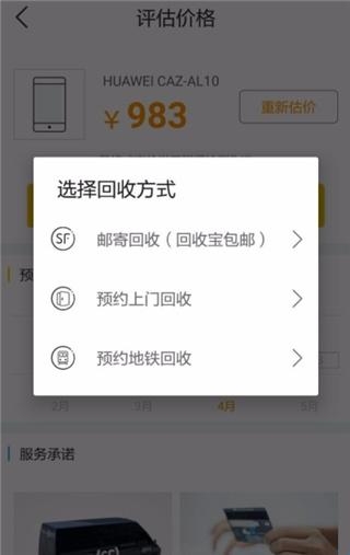 7、点击“去收钱”后,会出现让你选择回收的方式,主要回收的方式有三种,邮寄回收、预约上门回收和地铁回收。