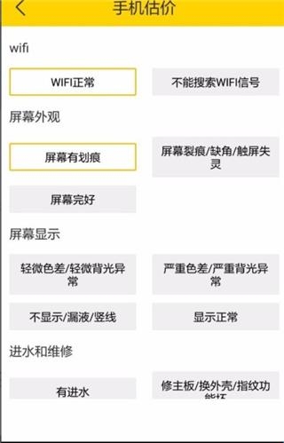 5、对手机正式骨架,选择该废旧手机的一些基本情况,选择完成之后,点击“查看预估价”。
