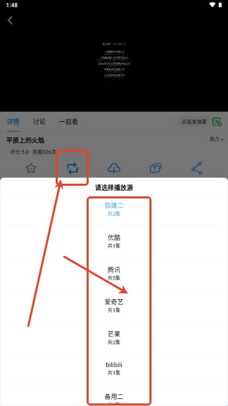 4、如果无法播放的情况下,可以选择换源来切换不同的播放源进行观看;