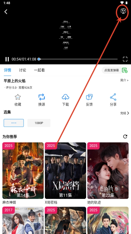 5、还可以点击TV按钮进行投屏操作;