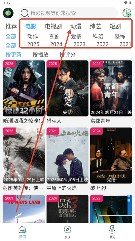 智能推荐,精准匹配:根据用户的观影历史和偏好,智能推荐个性化内容,帮助用户快速发现感兴趣的影视作品。