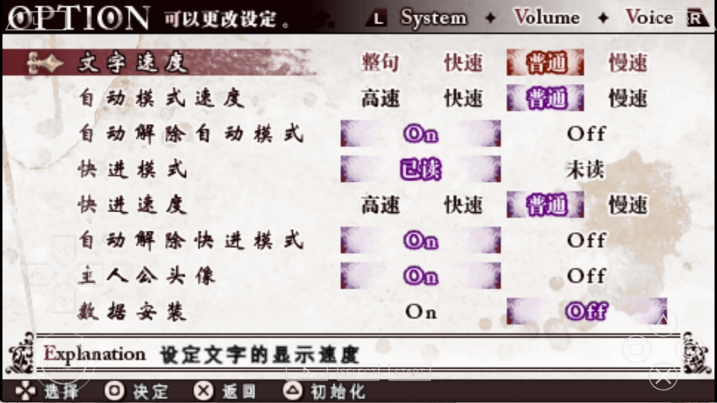 2、接着点击option打开设置,玩家可调整游戏文字播放速度。