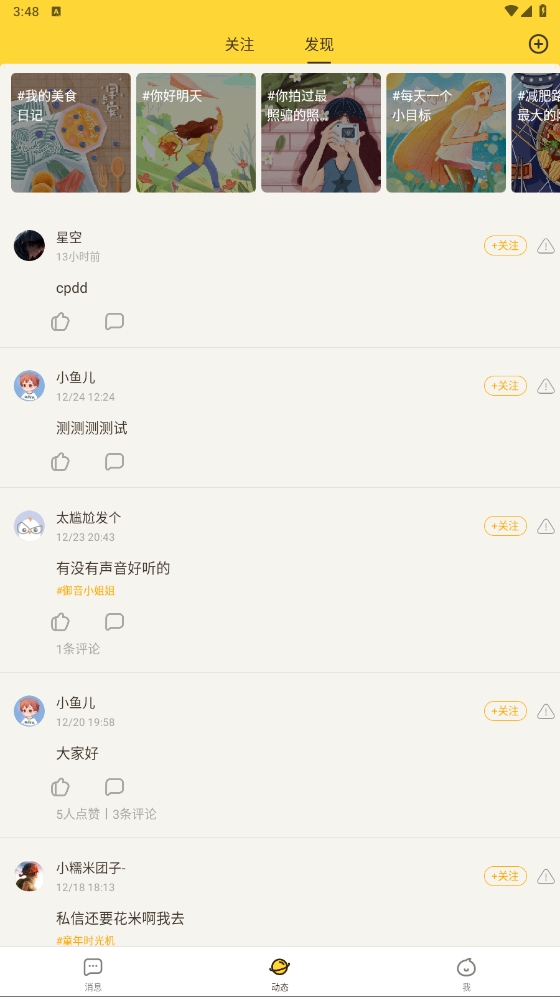 4、进入主页后点击动态查找自己感兴趣的内容,就可以与想要了解的用户一起聊天了。