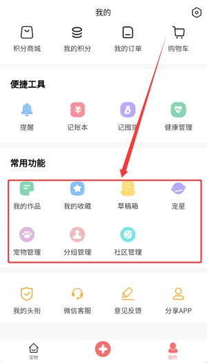4、我的页面集中管理个人作品、收藏内容、草稿文件及宠物详细信息。