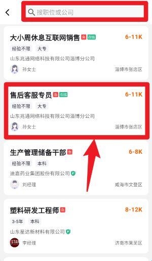 3、在职位搜索页面,可通过顶部搜索栏输入职位名称或公司名称,快速定位目标岗位,并查看详细招聘信息。