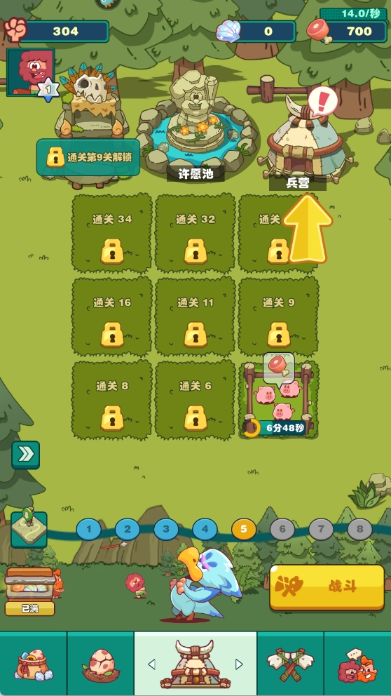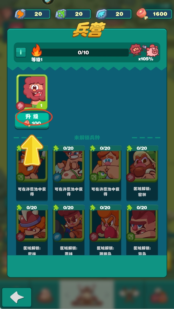 5、点击兵营鸡腿可以升级你的士兵,让你的士兵变得更加强大。
