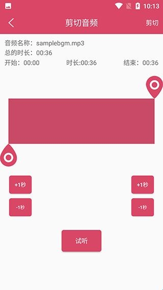 3、点击剪辑音频,添加一段手机中的语音,截取你想要的部分。