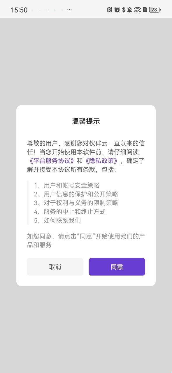 1、在本站下载好伙伴云表格点击进入,同意《用户协议》。