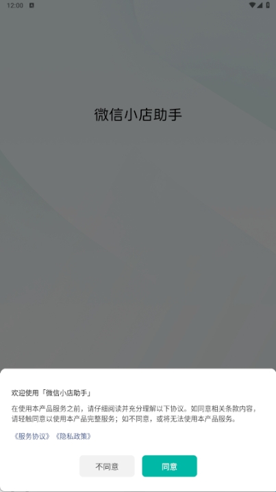 1、在本站下载好并打开微信小店助手,点击同意。