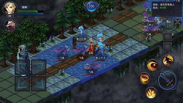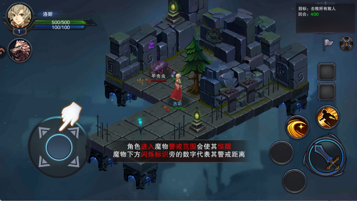 4、左下角的按键是角色控制键,右下角的按键是攻击键和技能键。
