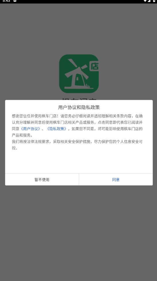 1、在本站下载好枫车门店后并打开,点击同意《用户协议》。