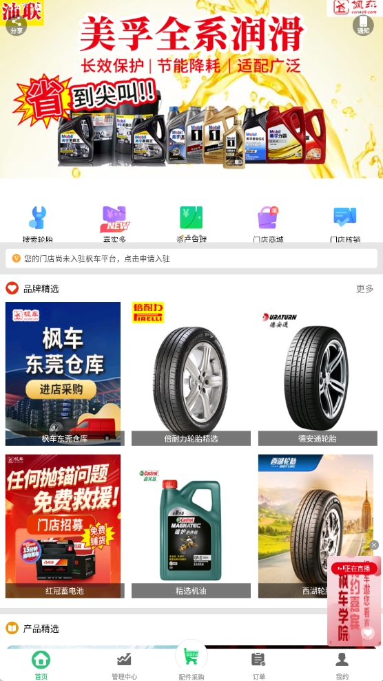 3、登陆完成后进入主页软件会推荐一些品牌精选的配件为用户展示。