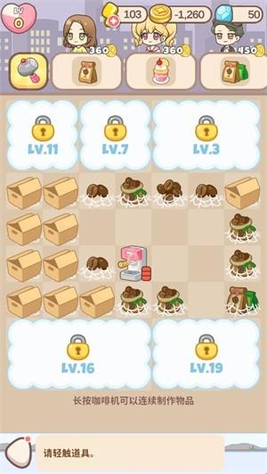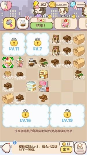 2、点击咖啡机可以获得各种物品,两个相同的物品可以合成更高的等级。