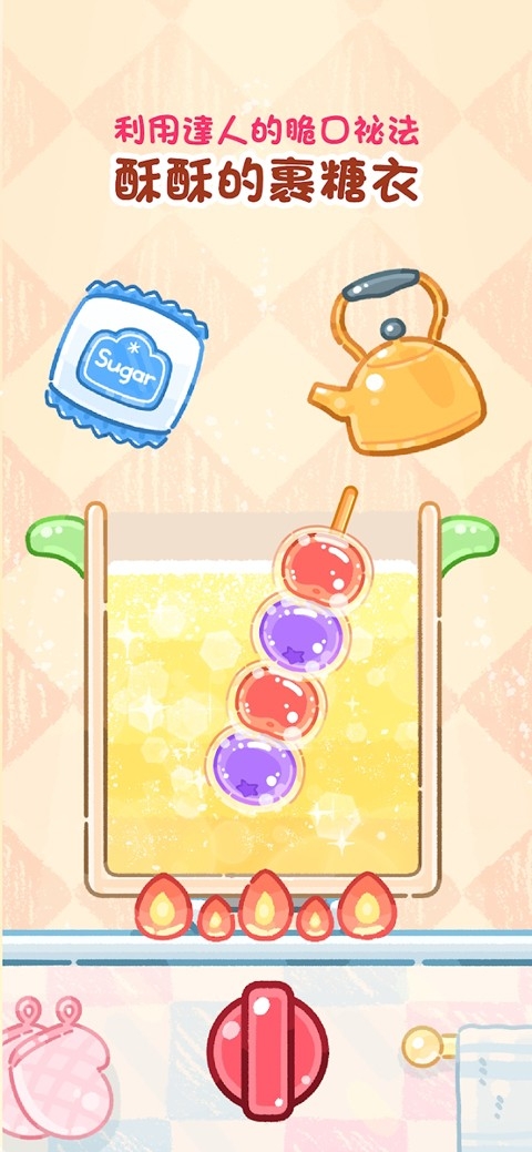 3、串好以后就可以开始熬糖了,按照游戏中的提示进行制作。