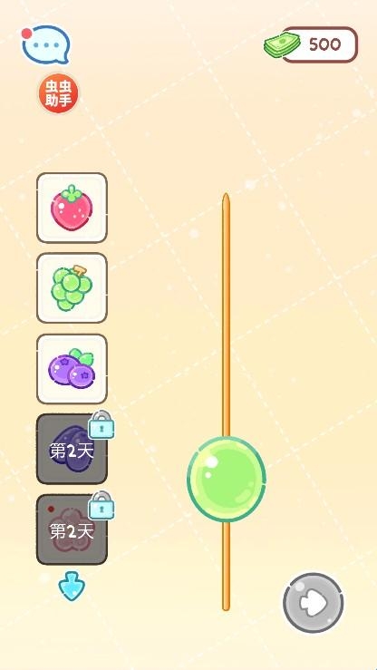 2、选择喜欢的水果放入到签子上方然后滑下去。