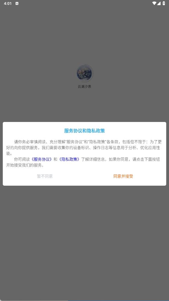 1、在本站下载好云潮汐表并打开,点击同意进入主页。