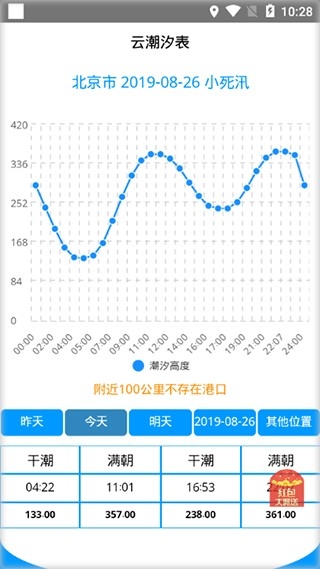 云潮汐表是一款能够帮助赶海的用户轻松查看潮汐的软件,在软件内为用户提供了地区定位功能,可以准确定位当前所在的城市,让用户可以全面详细的了解潮汐信息,还可以根据当天的天气信息对恶劣的天气进行预测并及时推送提醒,让用户享受舒心的赶海生活,欢迎有需求的用户前来下载体验。