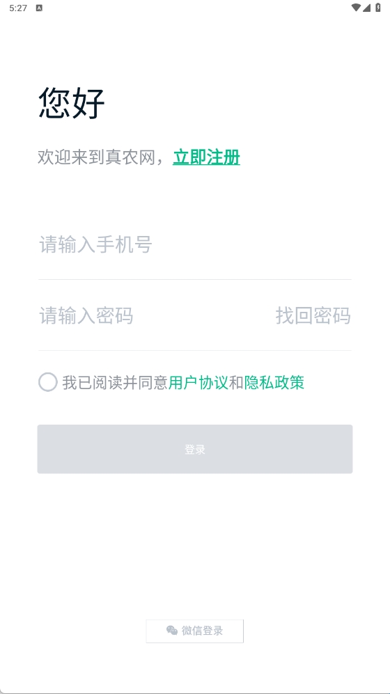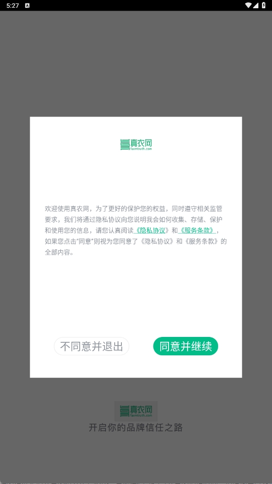1、在本站下载好真农网后并打开,点击同意《用户协议》。