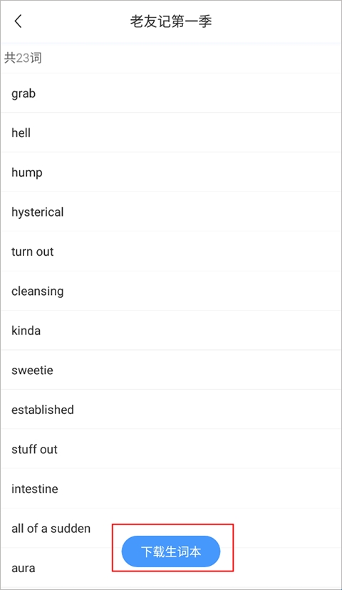 3、点击生词本,下载好之后即可自动添加到生词本界面了