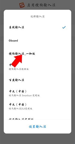 4、在弹出的输入法选择界面中选择搜狗输入法一加版