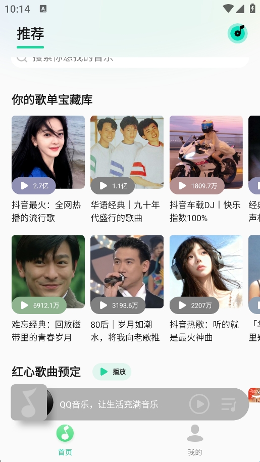 2、首页向下滑动可以查看到更多的宝藏歌单,喜欢就一键收藏