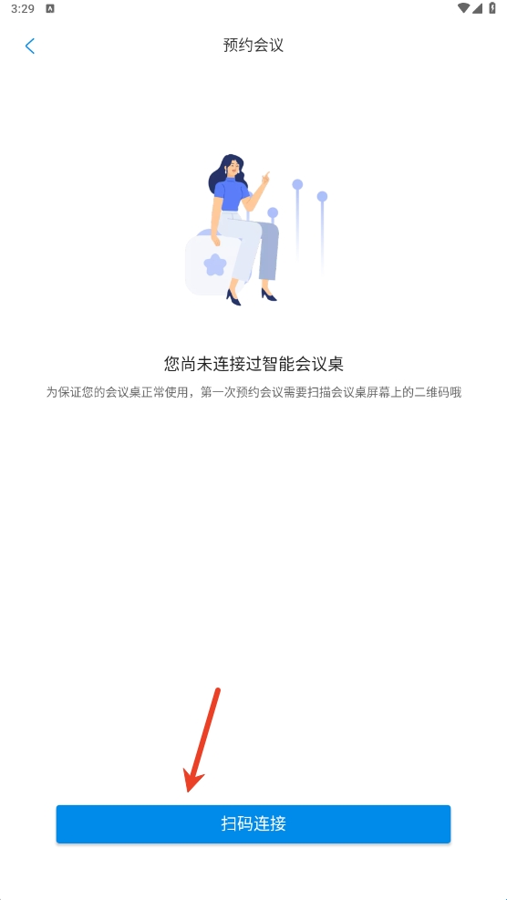 2、为保证用户会议桌正常使用,第一次预约会议需要扫描会议桌上的二维码进行连接。