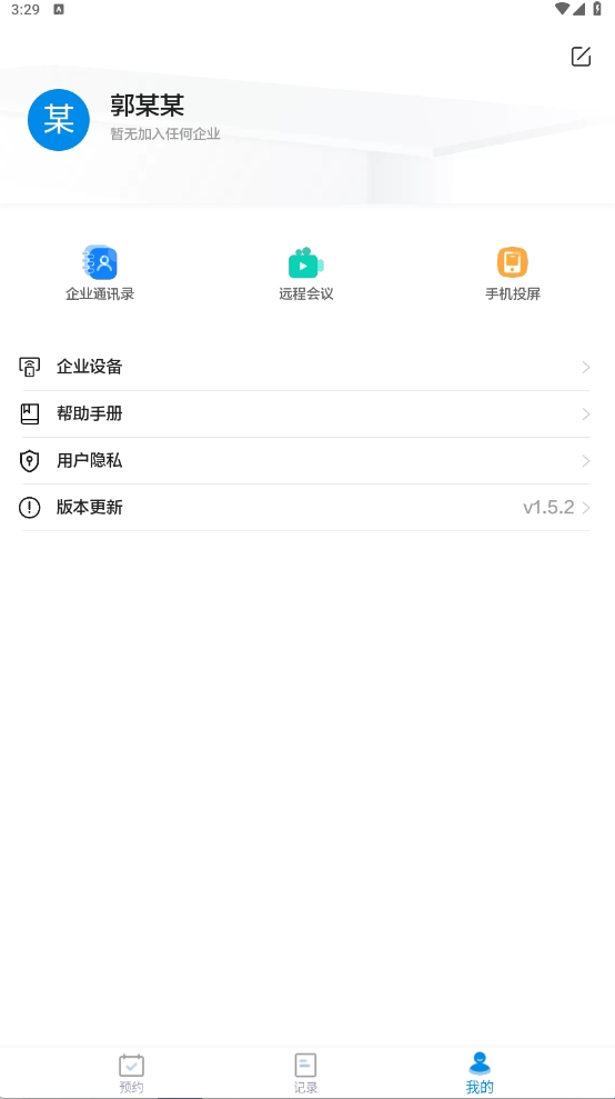 4、在我的页面中,用户可查看企业通讯录,开启远程会议和手机投屏,还能够查看已连接的企业设备。