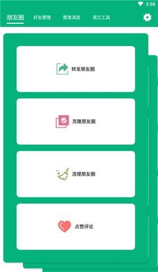 1、在本站下载好一键转发精灵并打开,主页朋友圈提供了转发朋友圈、克隆、清理、点赞评论等功能。