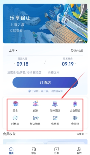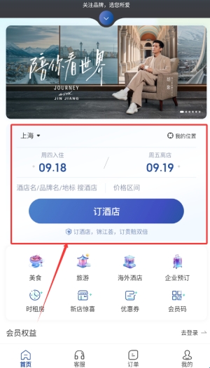 2、通过首页预订模块,可根据日期和房型快速完成酒店入住预约。