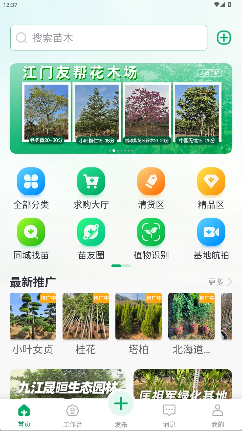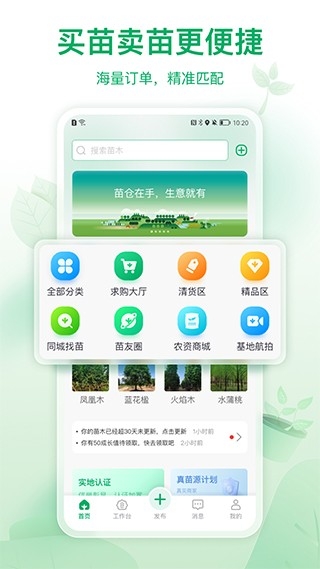 3、进入到主页有着多种功能供用户使用,如同城找苗、植物识别、求购大厅等。