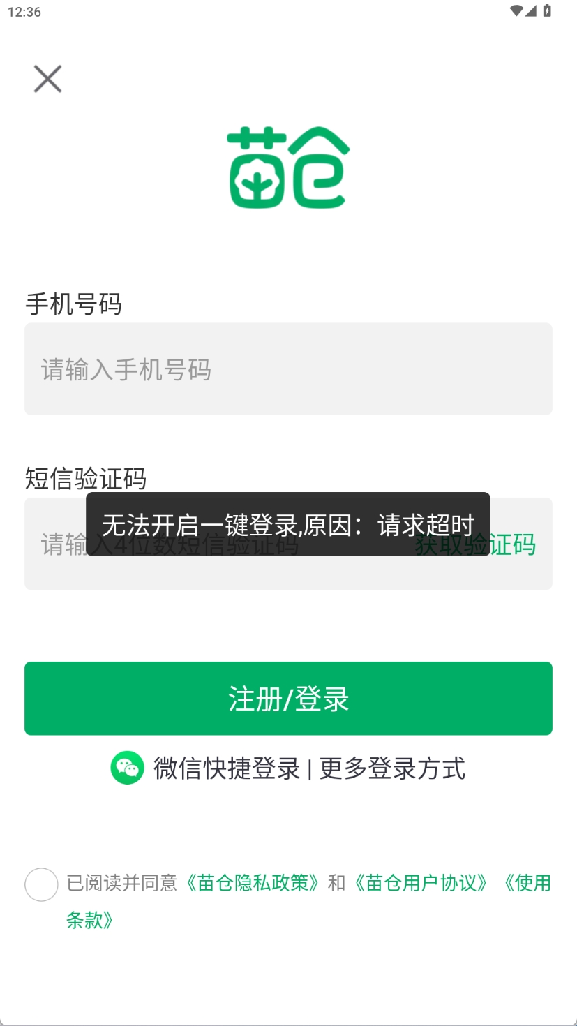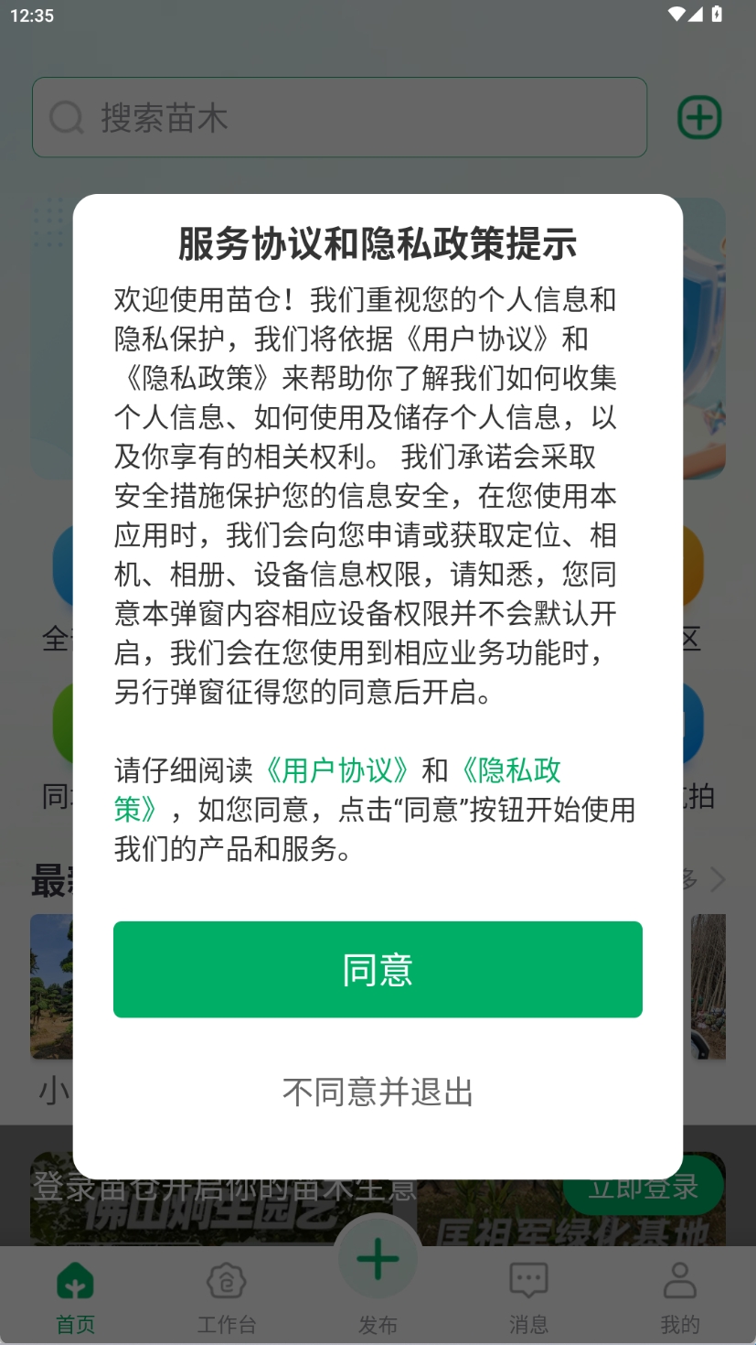 1、在本站下载好苗仓后并打开,点击同意《用户协议》。