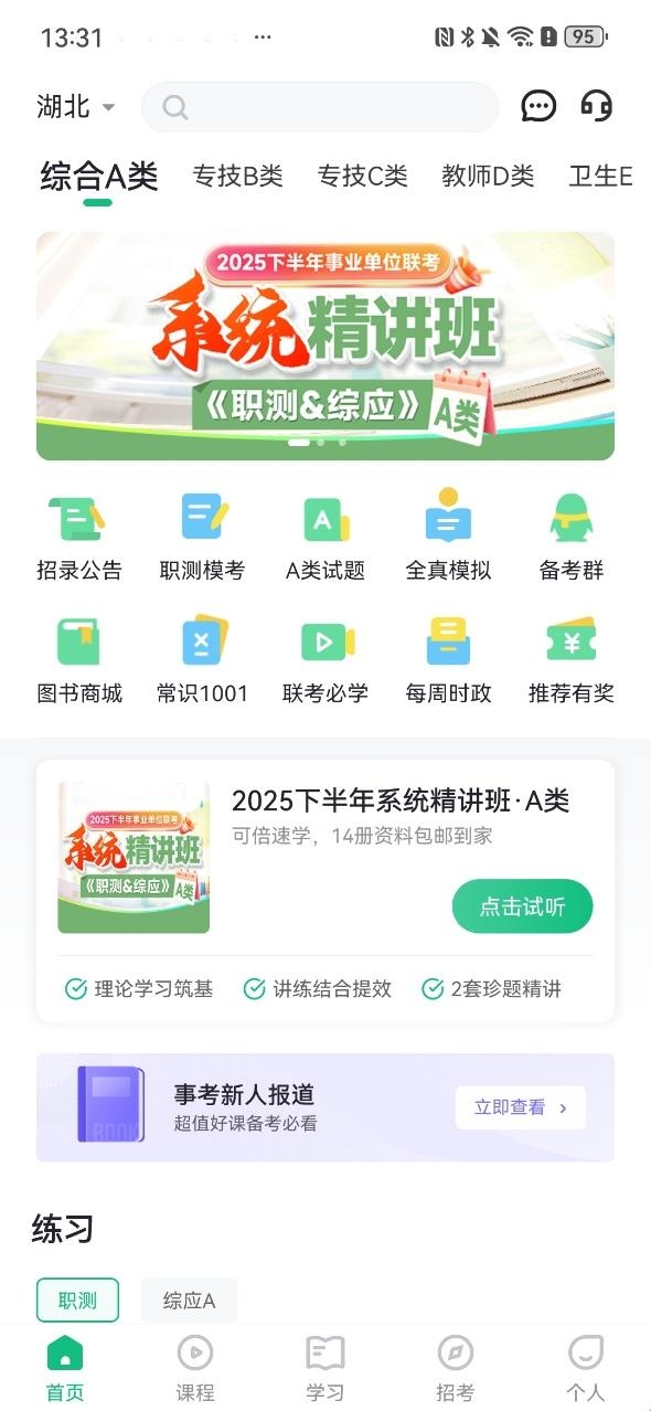 4、进入到首页有着多种功能供用户使用,如职测模考、联考必学、全真模拟等。