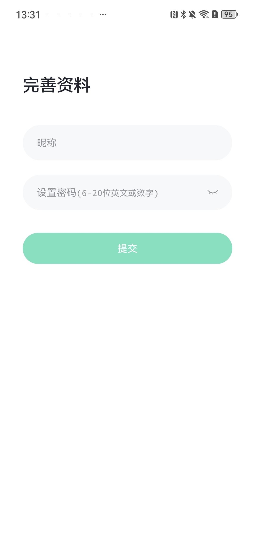 3、验证完成后,以设置昵称与密码并提交作为流程,即可完成注册。