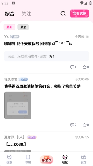 4、在社区页面中可查看最新的动态信息,你可以及时了解社区资源信息。