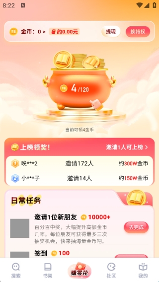 3、在赚零花页面中可以了解各类精彩的任务,用户完成后可以快速获得精彩;