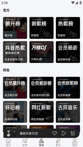 1、软件首页提供了很多热门歌单可以查看。